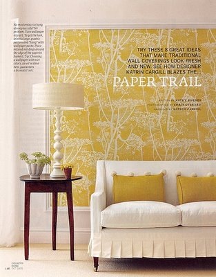 ReplyDeleteI particulary like the photo that's called "paper trail". I am assuming that is wall paper behind that beautiful white sofa. It struck a chord with me since I am looking for an oversized piece of art but don't want to break the bank. Thanks.